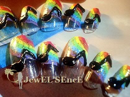 レインボーカラーとポップでかわいい音符の組み合わせネイルが完成しました♥